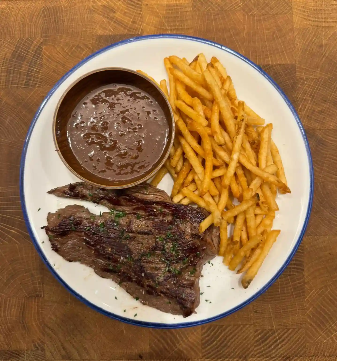 Steak, raclette cheese, onion confit, crème fraîche with smashed potatoes or green salad